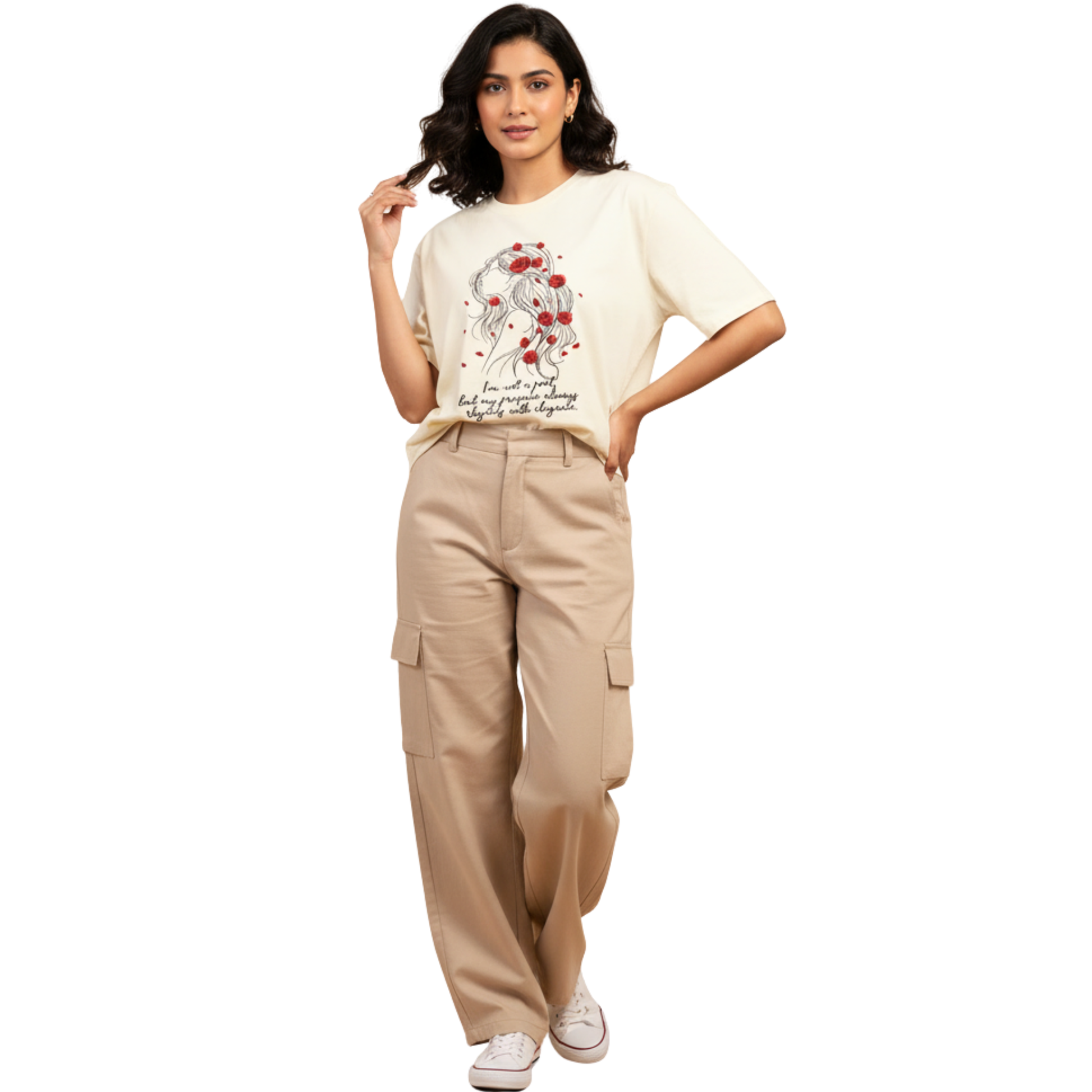 Style Tip: An oversized T-shirt is all about effortless elegance. Pair it with straight-leg trousers or relaxed denims, tuck in the front slightly, and add clean white sneakers or sliders. Finish with minimal jewelry for a look that’s relaxed, yet refined.